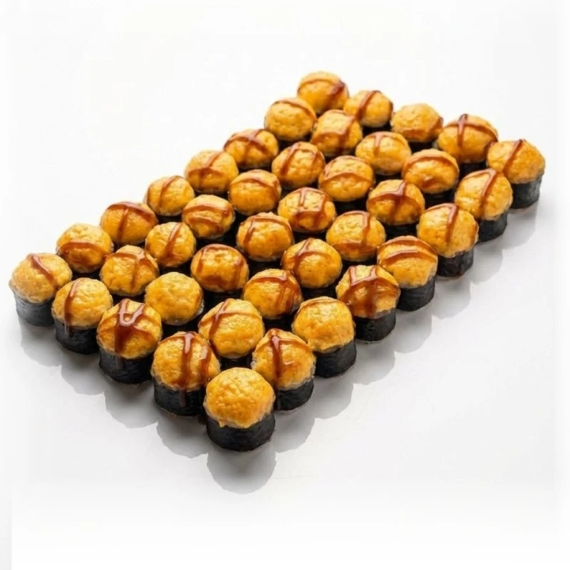 1 килограмм запеченных роллов: Ролл с лососем Ролл с крабом Ролл с креветкой Ролл с огурцом Ролл с курицей