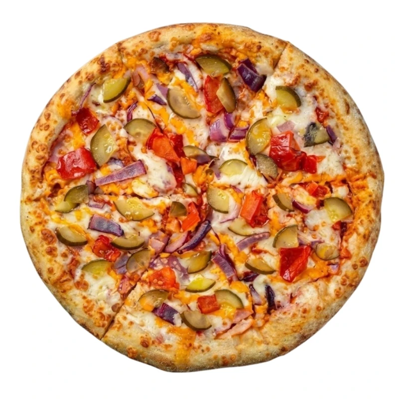 Состав: мука, вода, дрожжи, сахар, соль, томатный соус, бекон, томаты, лук красный, соус бургер, огурцы маринованные, сыр моцарелла, итальянские травы Вес порции: 28"- 670 гр, 43"-1060 гр Пищевая ценность на 100 грамм: Б-15,1,Ж-16,У-30,2 ; кКал 269