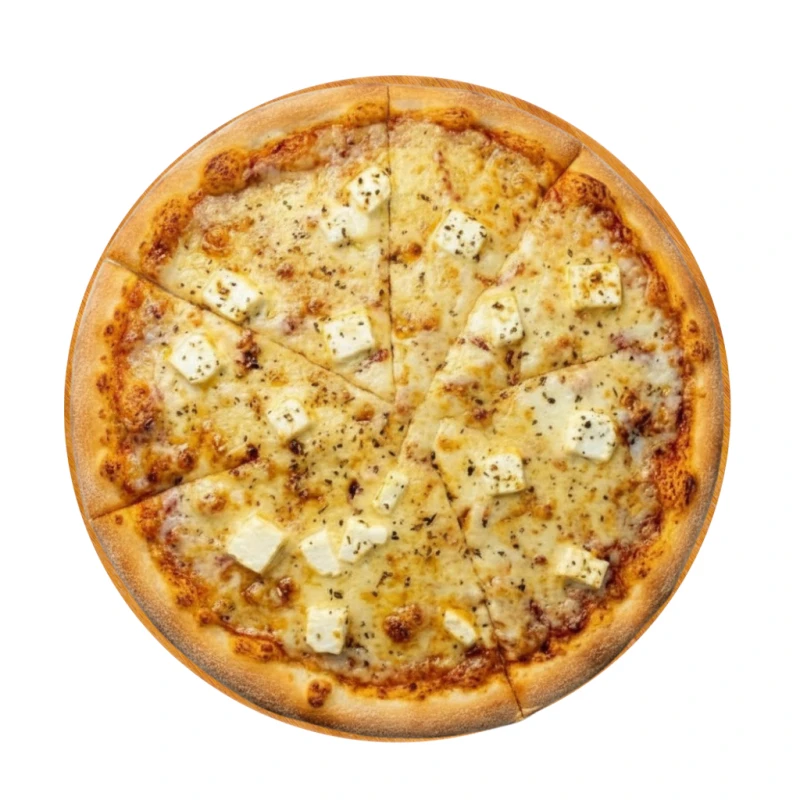 Два сыра — одна любовь. Солоноватая фета и тягучая моцарелла создают идеальный сырный дуэт. Томатный соус добавляет сочности, а итальянские травы — аромата. Пицца, которая тянется и тает во рту. Состав: тесто (мука, вода, дрожжи, сахар, соль), томатный соус, сыр фета, сыр моцарелла, итальянские травы Вес порции:28"- 450 гр, 43" - 900 гр